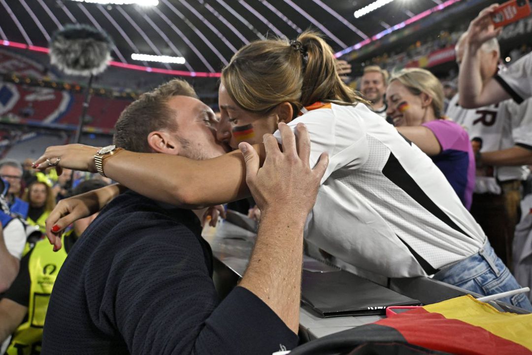 Printre ele, inclusiv prietena selecționerului Julian Nagelsmann, Lena Wurzenberg. Fostă jurnalistă la tabloidul Bild, Lena l-a încurajat din tribună, n-a ezitat să-l sărute în public, după fluierul final al fiecărei partide, și a fost o prezență obișnuită în cantonament.