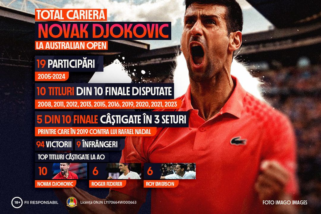 Dominația lui Djokovic la Australian Open este una care nu poate fi contestată, sârbul câștigând toate cele zece finale în care a apărut.