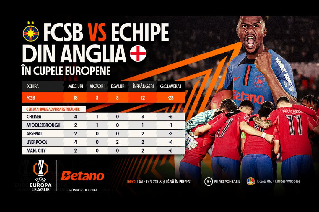Arena Națională se va transforma într-un adevărat vulcan, joi seara, de la ora 22:00, când FCSB, campioana României, va înfrunta pe Manchester United în ultima etapă a fazei principale din Europa League. Un meci care, pe Betano, se trăiește mai intens cu noua opțiune exclusivă de pariere Bet Builder Boost, dar și cu o Misiune pregătită special pentru acest duel de gală. Fanii nu vor avea timp să se plictisească nici la pauza meciului, Betano pregătind un Free to All pentru toți cei interesați să-și încerce norocul. Din acest sezon Betano a devenit sponsor oficial al UEFA Europa League și UEFA Conference League, fiind totodată așa cum bine se știe și principalul sponsor al echipei FCSB.