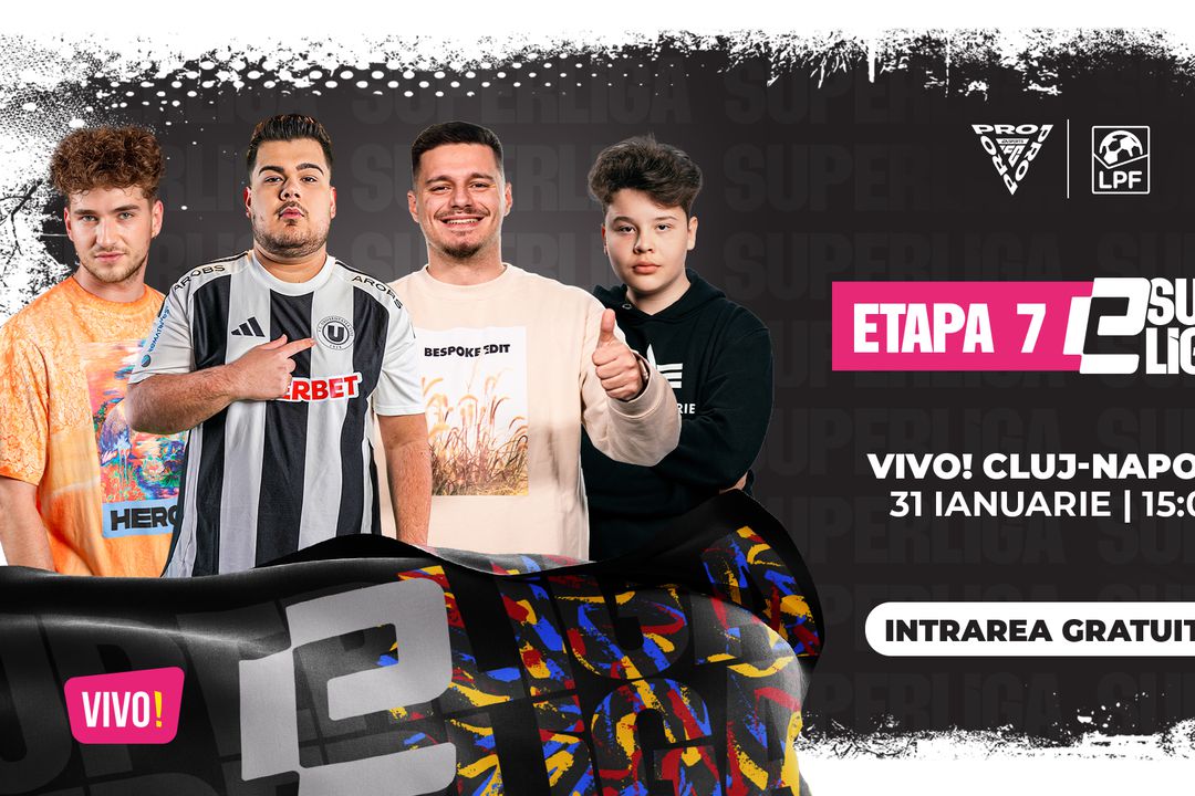 eSuperliga, liga oficială de esports afiliată Superligii de fotbal a României, se întoarce la Cluj-Napoca cu o nouă etapă pe terenul virtual din EA SPORTS FC. A șaptea rundă din campionatul intern are loc vineri, 31 ianuarie, de la ora 15:00, la VIVO! Cluj-Napoca. Clujenii sunt așteptați să vină și să-și susțină echipele preferate, FC CFR 1907 Cluj și Universitatea Cluj.
