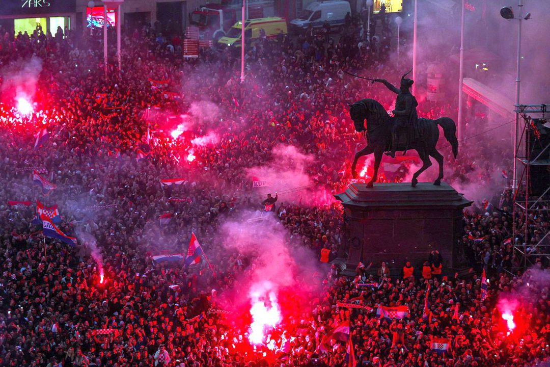 La intrarea în spațiul aerian croat, avionul care transporta echipa națională a fost escortat de avioane de vânătoare Rafale și a survolat Piața Ban Jelacic, unde zeci de mii de suporteri s-au adunat pentru a-i întâmpina pe noii vicecampioni mondiali.