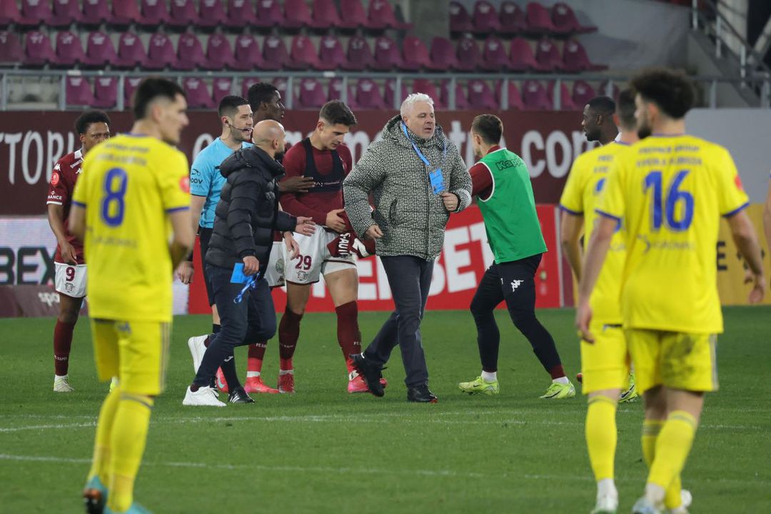 Marius Șumudică a primit un cartonaș galben în minutul 75, după ce și elevul său, Claudiu Petrila, a fost avertizat. Tehnicianul Rapidului a fost șocat de decizia arbitrului, după cum a fost surprins de fotoreporterul GSP, Ionuț Iordache.