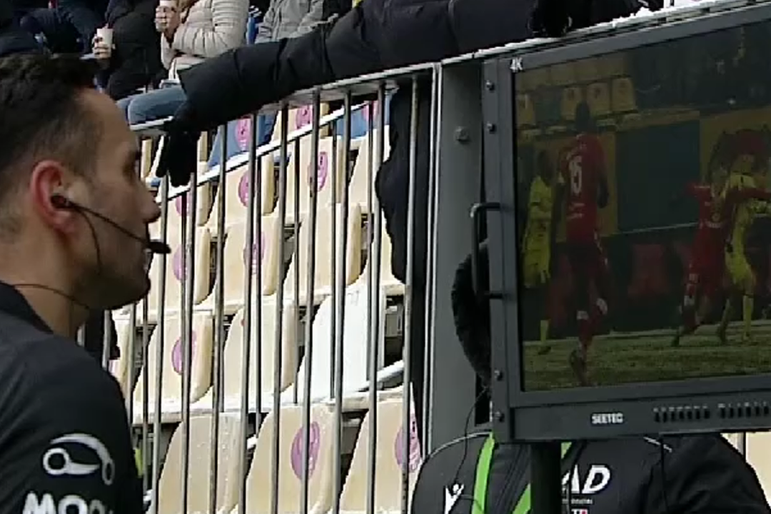 Jyry l-a atins cu palma în figură pe Hrezdac, iar „centralul” Sebastian Colțescu, după intervenția arbitrajului video, a anulat reușita și a tăiat elanul galben-albaștrilor.