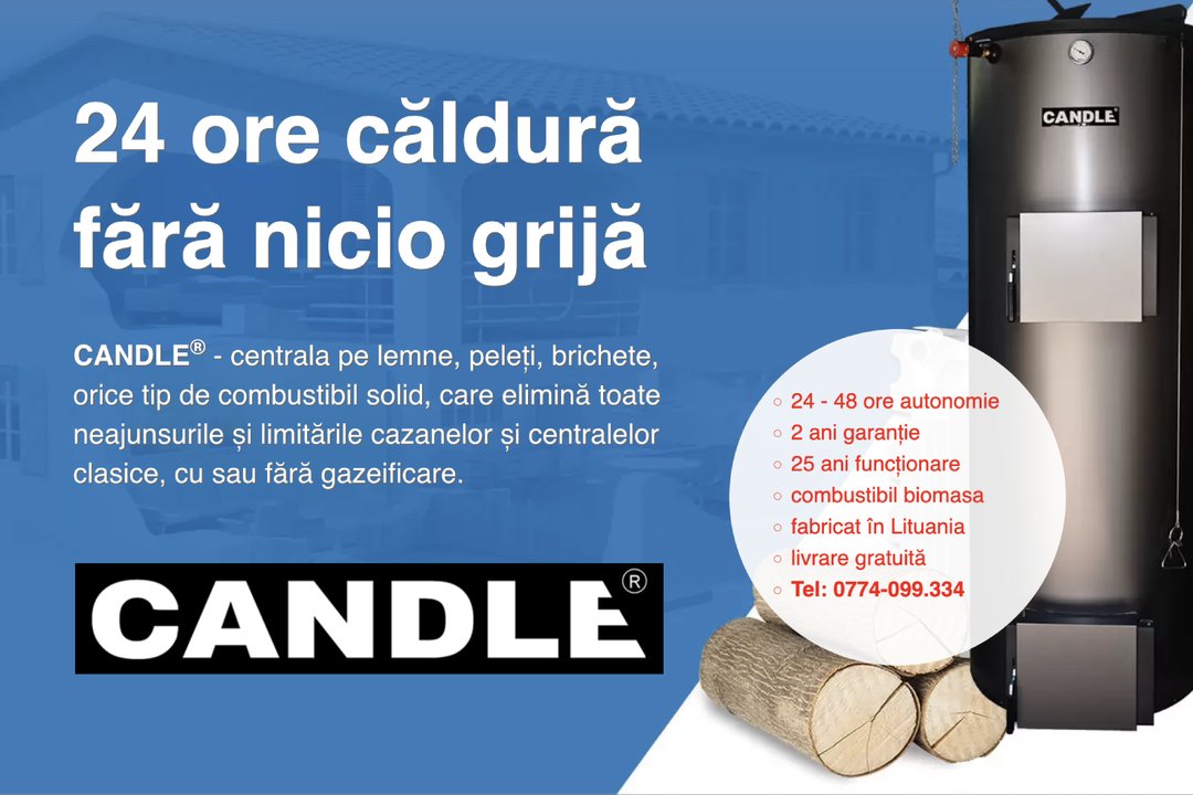Un alt avantaj al centralelor pe lemne, peleți și brichete, CANDLE este ușurința în utilizare și întreținere. Aceste sisteme cu ardere tip lumânare sunt simple de operat și necesită mai puțină întreținere comparativ cu alte tipuri de centrale. Dar poate ca cel mai mare avantaj este că putem să livrăm centrale de 18KW, 20KW, 30KW, 35KW, 50 KW, complet echipate, gata de aprinderea focului în maxim 2 ore.