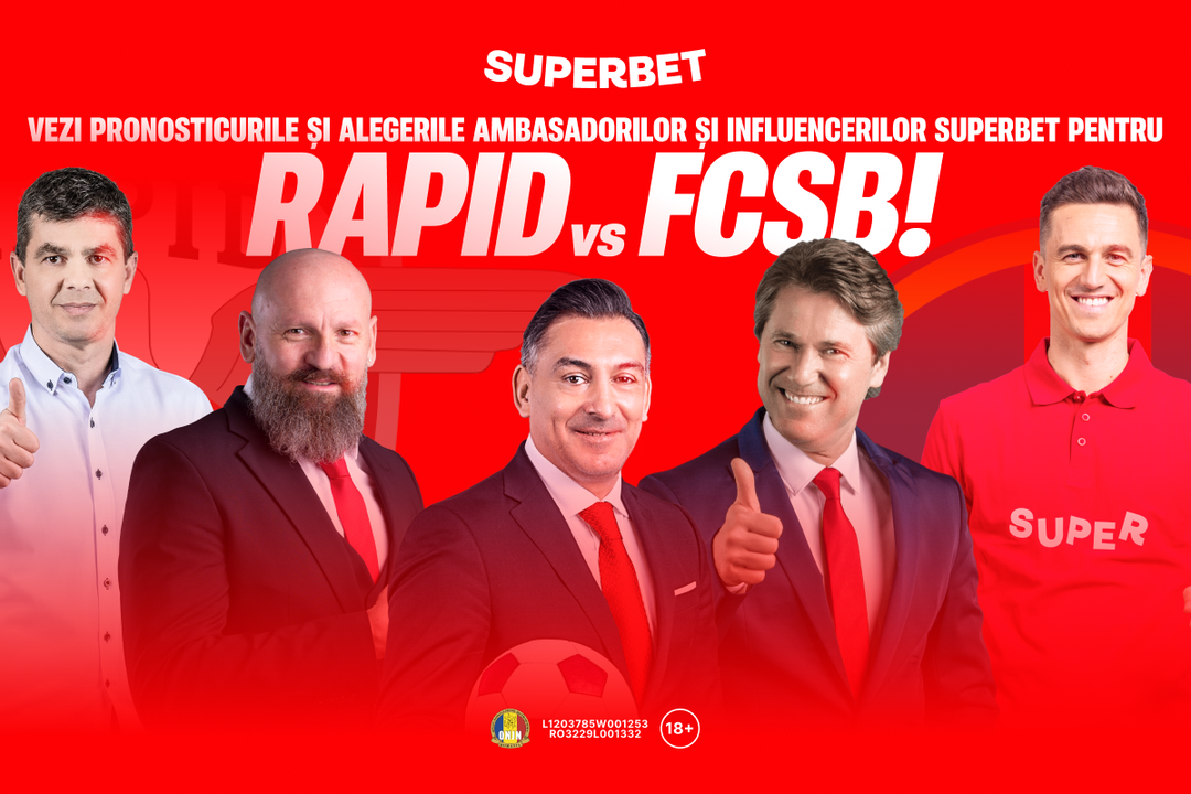 Pentru Ambasadorii și Influencerii Superbet, echilibrul e cuvântul de ordine. Zece dintre ei așteaptă un rezultat de egalitate în derby-ul bucureștean, șase au ales victoria Rapidului, în timp ce alți șase merg pe mâna campioanei en-titre.