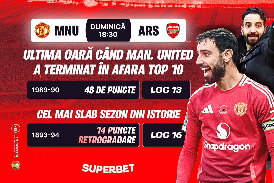 În timp ce Arsenal se menține în elita Premier League, United se zbate în mediocritate. Cu doar 33 de puncte după 27 de etape, echipa lui Ruben Amorim riscă să încheie sezonul în afara top 10, ceea ce nu s-a mai întâmplat din 1990.
