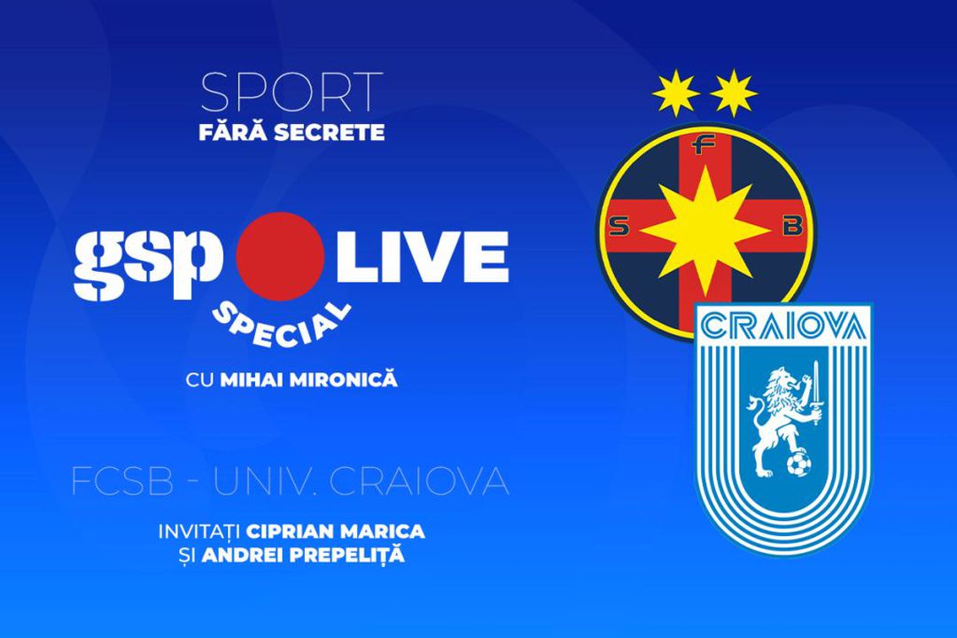 Aceștia vor prefața partida dintre FCSB și Universitatea Craiova și vor primi informații în timp real de la reporterii GSP aflați la Arena Națională. Revenim la pauză, cu analiza primei reprize, dar și la final cu concluziile și reacțiile serii.
