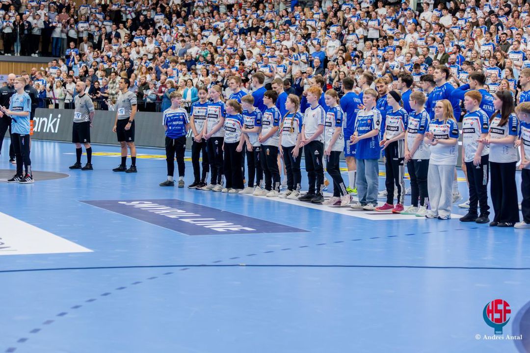 Atmosfera electrică a făcut ca naționala pregătită de Peter Bredsdorff-Larsen să obțină un rezultat de egalitate, scor 32-32, cu gol din extrema stângă la ultima acțiune.