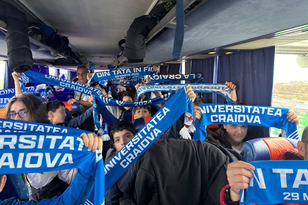 Universitatea Craiova a postat pe pagina de Facebook a clubului imagini cu micuții suporteri în autocare, în drum spre București, pentru partida din Giulești.