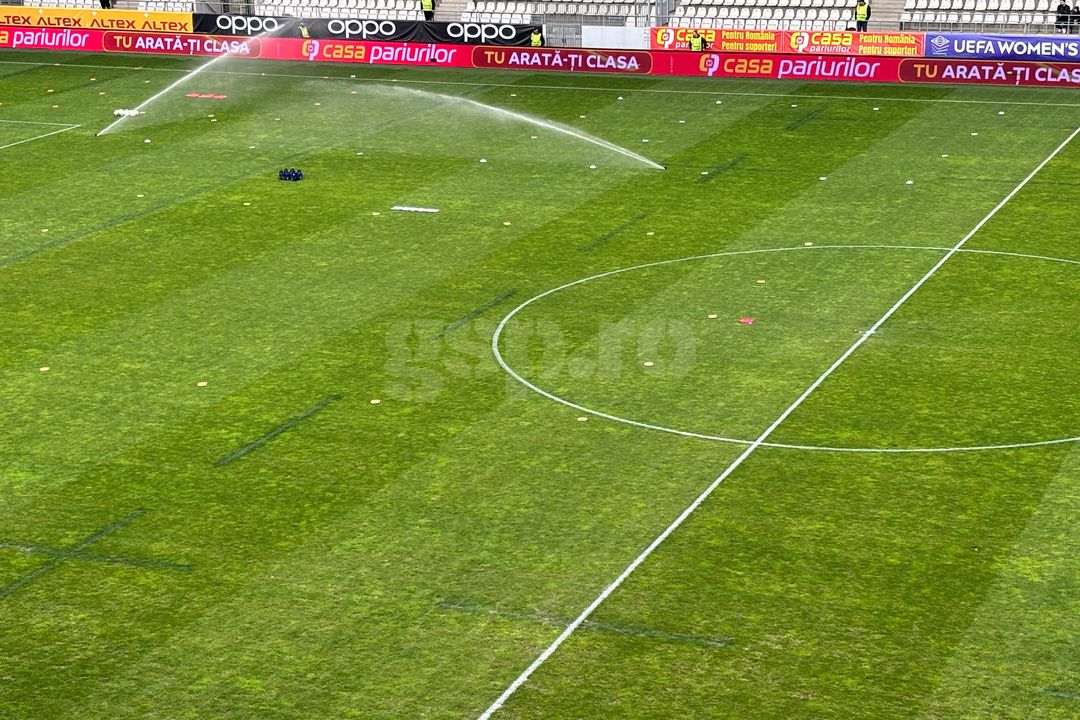 La centrul terenului, părți bune de gazon sunt pur și simplu pământ. GSP a intrat pe Arc si a surpins de aproape starea gazonului. Imaginile vorbesc de la sine. Un teren sub standardele din play-off.