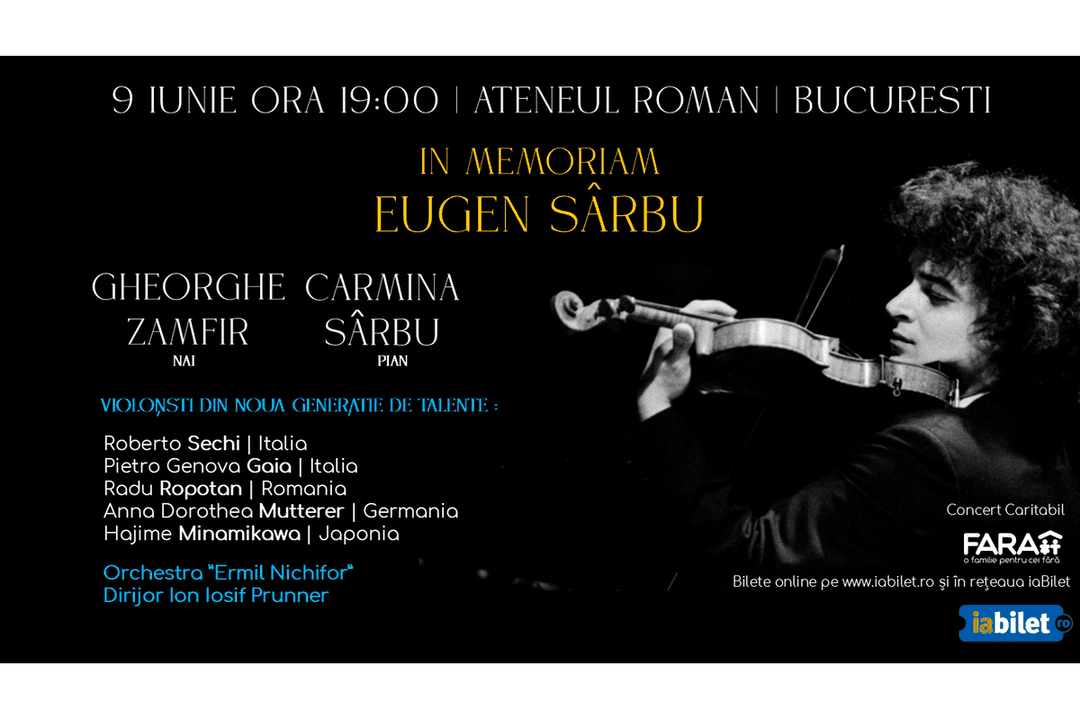 Luni, 9 iunie 2025, ora 19:00, la Ateneul Român, București, va avea loc un concert caritabil de excepție, dedicat memoriei marelui violonist Eugen Sârbu.