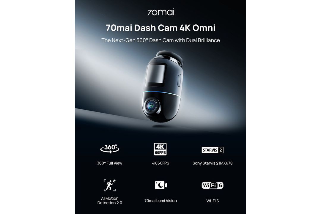 Astfel, noul model 70mai Omni 4K este echipat cu funcții esențiale, cum ar fi: vizualizare completă rotativă la 360°, rezoluție 4K la 60FPS, senzor Sony STARVIS 2 IMX678, înregistrare duală HDR, pe față și spate, detecție inteligentă a mișcării AI 2.0 dar și compatibilitate 4G, pentru monitorizare timp de 24 de ore de la distanță și conexiune tip wi-fi 6.