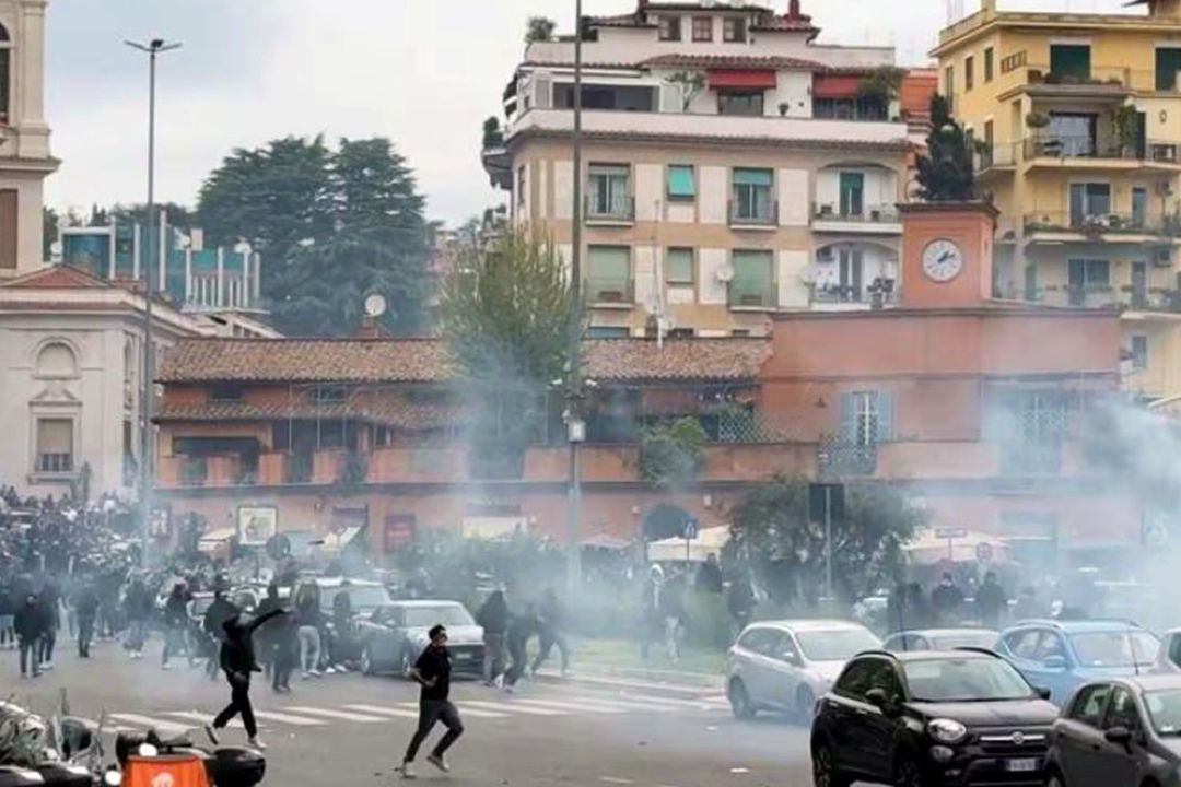 Imaginile preluate de majoritatea publicațiilor din „Cizmă” prezintă scenele de gherilă petrecute pe străzi, unde două grupuri rivale de fani declanșaseră o dispută ce risca să escaladeze serios fără intervenția promptă a forțelor de ordine.