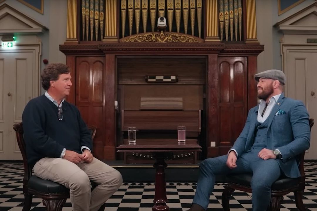 Marți, 15 aprilie, Tucker Carlson a realizat un interviu cu Conor McGregor în Amfiteatrul Francmasonilor, o clădire construită în 1869, care a devenit gazda Marii Loje a Francmasonilor din Irlanda.