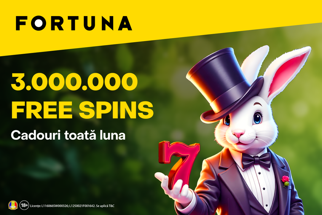 Pe telefon, pe tabletă, în aplicație, peste tot avem 3 milioane de rotiri gratuite la Fortuna.