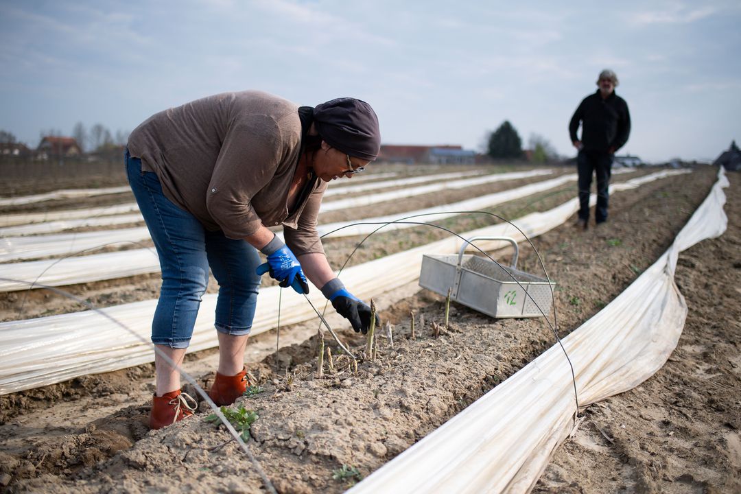 Fermierul oferă 14 euro pe oră, ceea ce înseamnă 2.912 euro brut lunar pentru 48 de ore de muncă săptămânale. Cu toate acestea, munca pe câmpurile de sparanghel este solicitantă fizic, necesitând o poziție aplecată pentru recoltare.