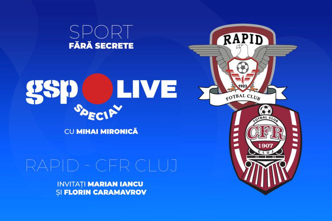 Aceștia vor prefața meciul dintre Rapid și CFR Cluj și vor primi informații în timp real de la reporterii GSP.ro aflați în Giulești. Vor reveni apoi în direct la pauză și la final pentru concluziile serii, dar și cu reacții de la stadion.