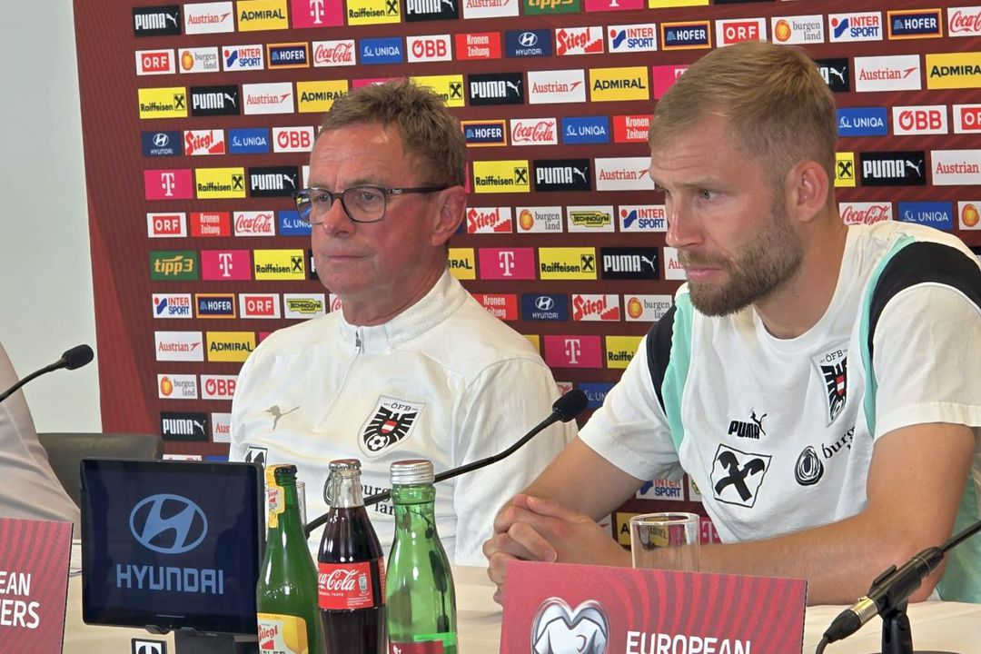 În după-amiaza zilei premergătoare disputei dintre Austria și România, „Das Team” a susținut antrenamentul oficial pe „Ernst Happel”, apoi Ralf Rangnick și Konrad Laimer, fundașul dreapta al celor de la Bayern Munchen, au prefațat duelul cu „tricolorii”. Înainte de declarațiile acestora, a luat cuvântul Josef Proll, fostul vicecancelar federal al Austriei, și, începând de luna trecută, președintele Federației Austriece de Fotbal.