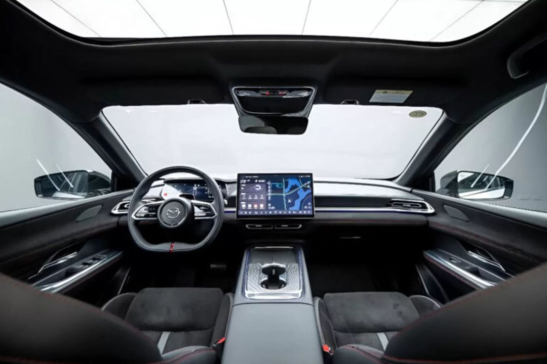 Mazda a adăugat, de asemenea, retroiluminare de culoare roșie pentru interior și o aplică cu aspect de plasă pentru consolă, care arată foarte asemănător cu modelul de tapițerie utilizat pe modelele sport de CX-60.