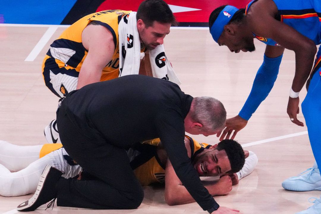 Haliburton avea probleme încă de dinaintea partidei cu numărul 6 a seriei, însă a ales să forțeze și să intre pe teren, în încercarea de a aduce un titlu pentru Pacers. În meciul 7, glezna i-a cedat, iar jucătorul de 25 de ani a suferit una dintre cele mai dure accidentări din baschet: ruptură de tendon ahilian.