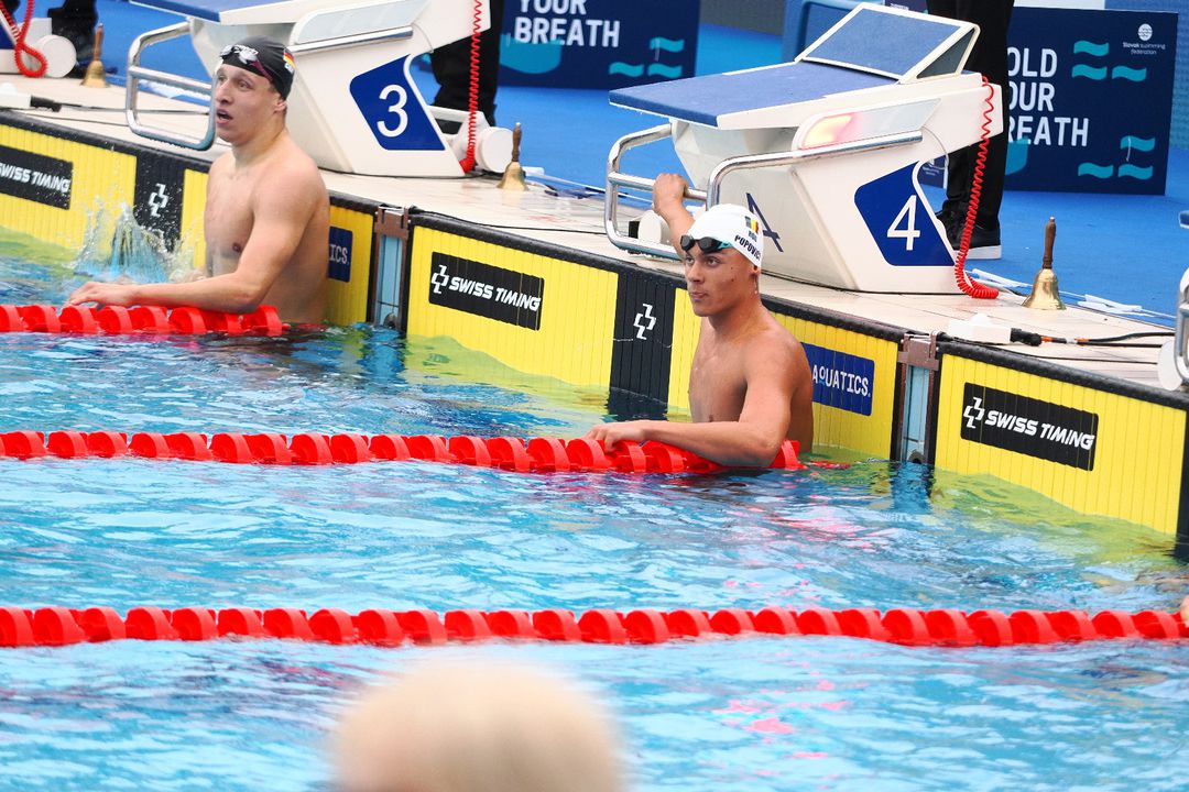 După medalia de aur cucerită de David Popovici, a venit rândul unui alt român să își adjudece cea mai strălucitoare medalie. Denis Popescu (21 de ani) a produs surpriza în finala de 100 de metri liber, terminând înaintea lui Diogo Ribeiro, campionul mondial en-titre.