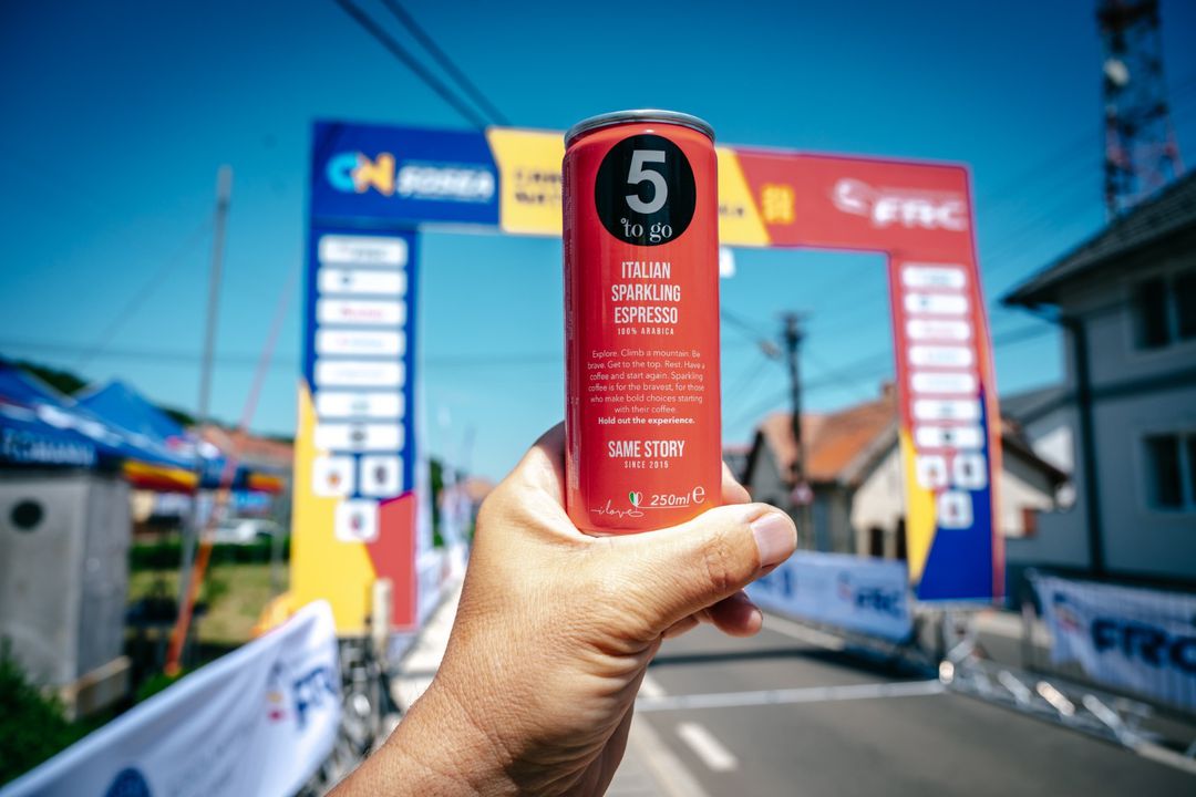 Italian Sparkling Espresso, noua băutură oficială a Federației Române de Ciclism, este unul dintre cele mai îndrăgite produse ready to drink din portofoliul 5 to go, pe bază de cafea 100% arabica, ușor acidulat, disponibil și în varianta ZERO ZAHĂR, parte din gama de băuturi inedite și îndrăznețe, care oferă și avantajul conținutului redus de calorii.