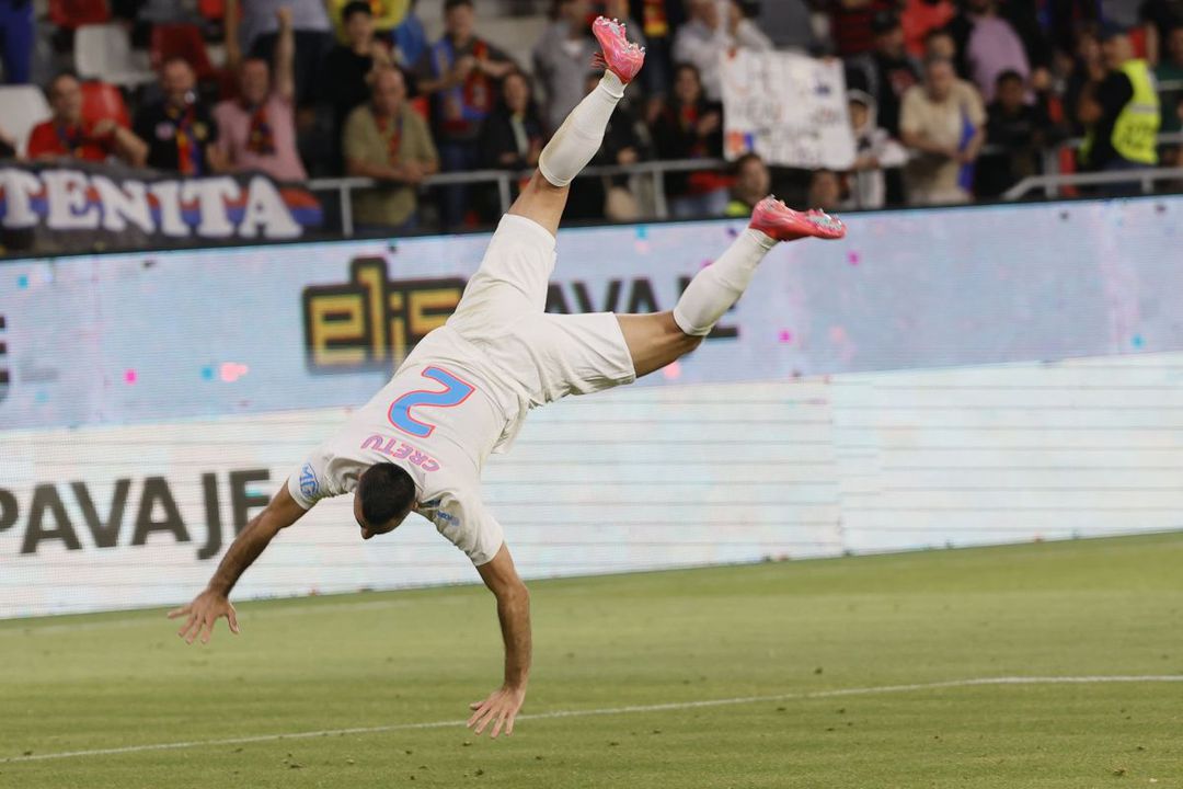 Valentin Crețu, fundașul dreapta al echipei, a făcut din nou tumbe, în urma victoriei din debutul campaniei europene.