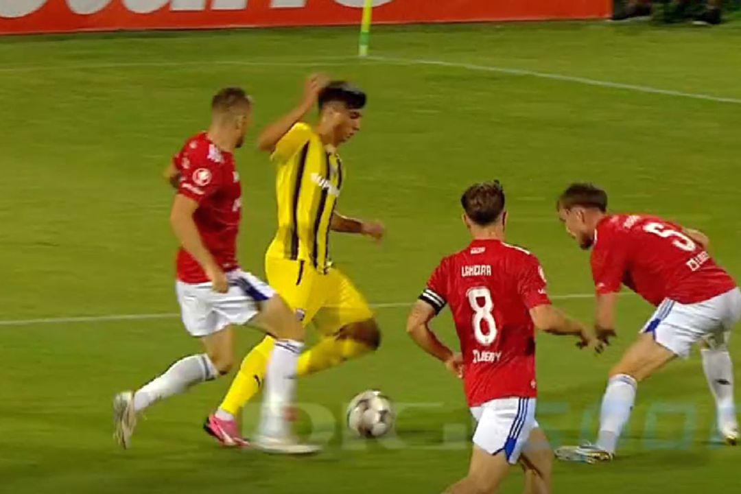 Așadar, în minutul 15, Alexandru Musi a luat o acțiune pe cont propriu în careul gălățenilor, a intrat în contact cu Vadik Murria (23 de ani), fundașul central de la Galați, și s-a prăbușit pe teren.