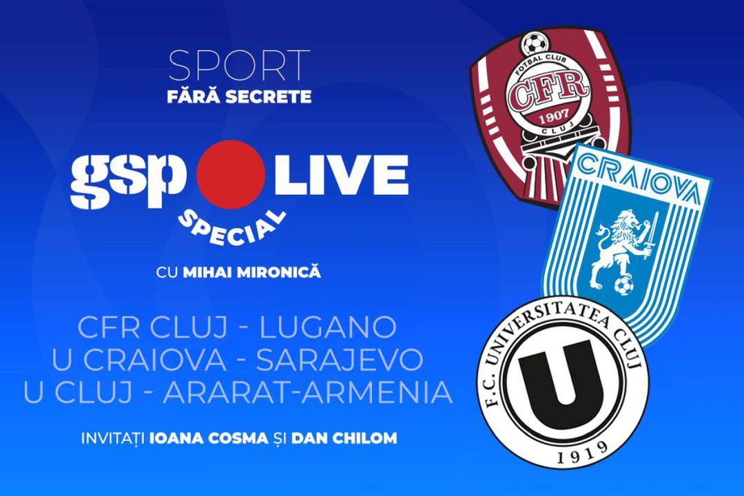 Ediția specială GSP Live revine joi, 31 iulie, ora 19:30, cu prilejul meciurilor pe care CFR Cluj, Universitatea Craiova și U Cluj le dispută în turul II preliminar din Europa League și Conference League.