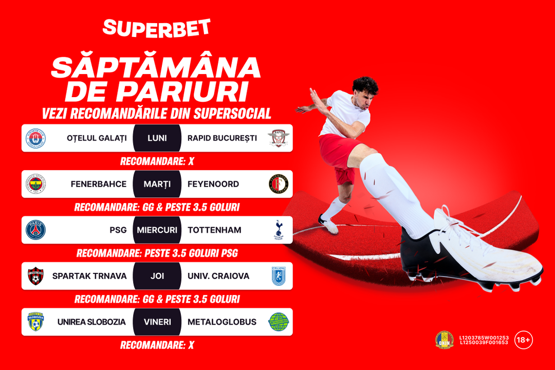 Miercuri, se simte la nivel maxim savoarea fotbalului la cel mai înalt nivel. Se joacă Super Cupa Europei, iar în confruntarea dintre PSG și Tottenham, influencerul din SuperSocial merge pe inspirația franțuzească, cu Peste 3.5 goluri pentru PSG (cotă 4.15).