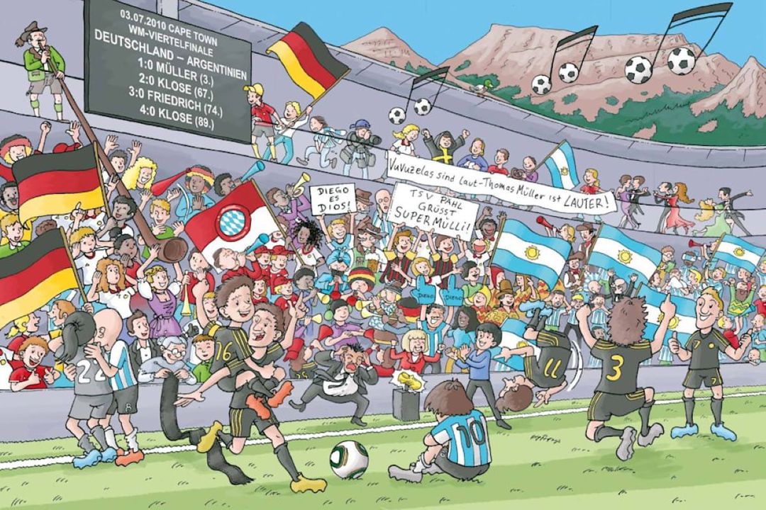 Printre momentele alese de fostul internațional se numără și victoria cu 4-0 împotriva Argentinei, din sferturile de finală ale Campionatului Mondial din 2010 (Africa de Sud). În ilustrația care însoțește textul poate fi văzut inclusiv un Leo Messi devastat (foto jos, nr. 10), așezat pe gazon, în timp ce jucătorii germani sărbătoresc.