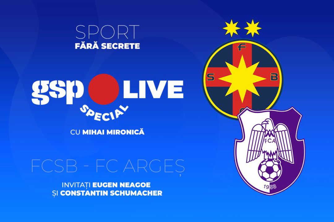 Aceștia vor prefața meciul dintre FCSB și FC Argeș și vor primi informații în timp real de la reporterii și fotoreporterii GSP.ro aflați la Arena Națională. Vor reveni în direct la pauza meciului și la final pentru toate concluziile serii și reacțiile de la stadion.