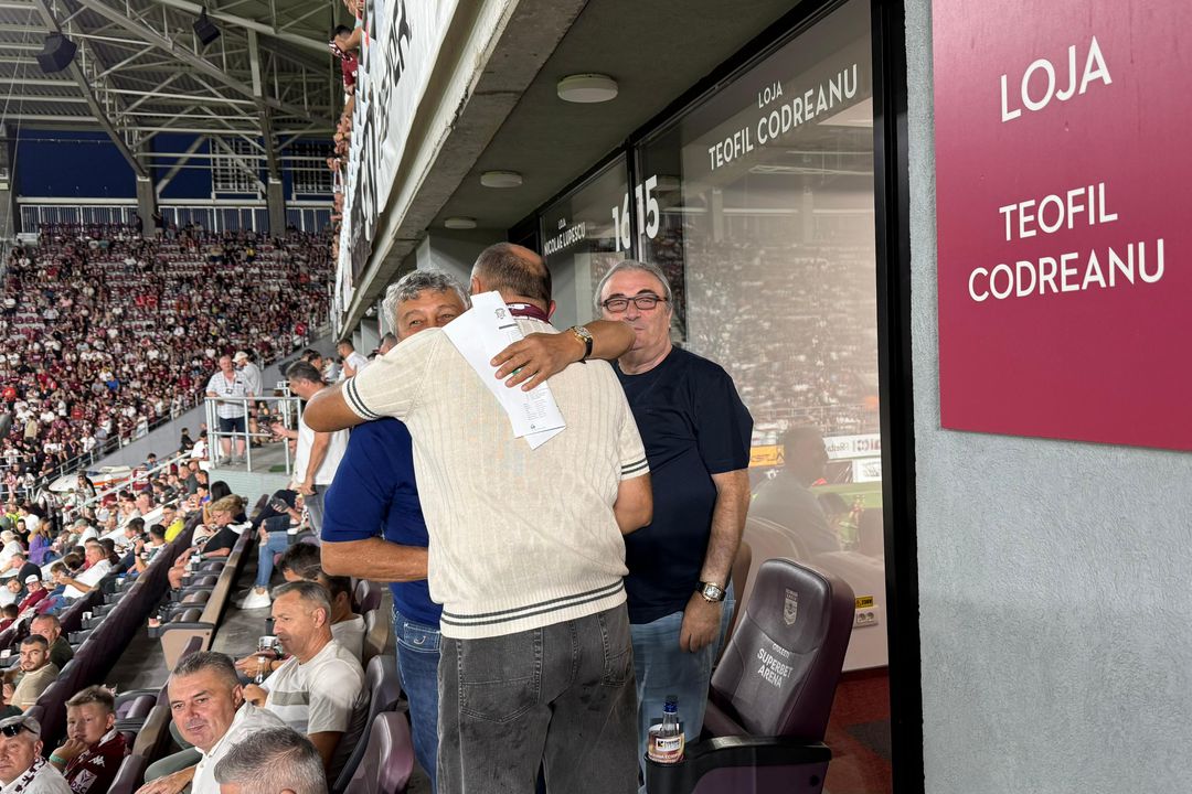 Înainte de startul partidei, Dan Șucu a venit special pentru a-l saluta pe selecționer în loja în care acesta stătea alături de ceilalți federali. Cei doi s-au îmbrățișat, apoi s-au retras câteva minute în lojă, unde au schimbat câteva vorbe, după care finanțatorul echipei gazde s-a întors la locul lui, de unde a urmărit meciul.