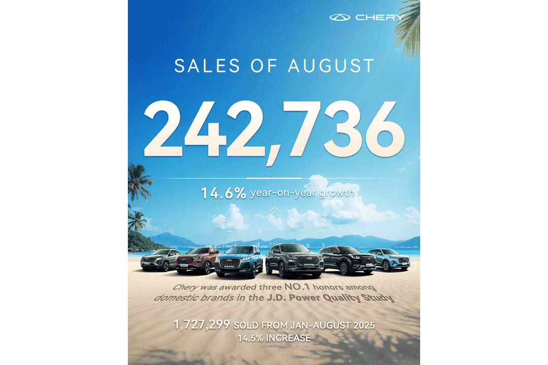 Vânzările brandului Chery au depășit pragul de 1 milion de unități într-un timp record. Grupul a marcat astfel trei realizări importante: cel mai mare exportator auto al Chinei, cea mai rapidă ascensiune în topul Fortune Global 500 și lider în calitatea independentă a industriei auto chineze.