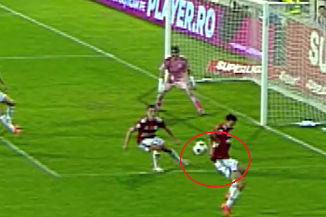 Absolut, nici nu se pune problema, mână depărtată de corp, toate ingredientele pentru penalty, asta era menirea lui Popa. Din punctul meu de vedere, fiind acolo în careu, ar fi trebuit și Feșnic să o vadă, poate o fi fost mascat, era în altă poziție.