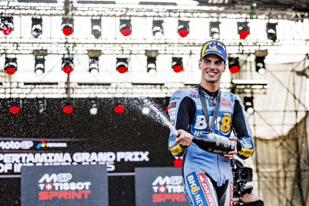 Fermin Aldeguer (20 de ani, BK8 Gresini Racing), aflat la primul sezon în MotoGP, a triumfat în Marele Premiu al Indoneziei, profitând de căzătura campionului mondial Marc Marquez (32 de ani, Ducati Lenovo) și de greșeala lui Marco Bezzecchi (26 de ani, Aprilia Racing).