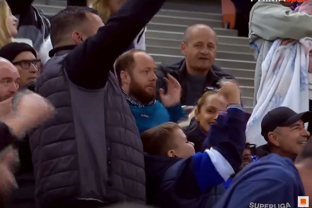 Imediat după ce Tănase a reușit să marcheze în minutul 37, camerele TV s-au mutat pe tribune, acolo un tată se bucura alături de un copil de reușita roș-albastră. Micuțul s-a repezit să le arate degetele mijlocii celor de la Craiova, în mijlocul bucuriei, spre amuzamentul celor din jur.