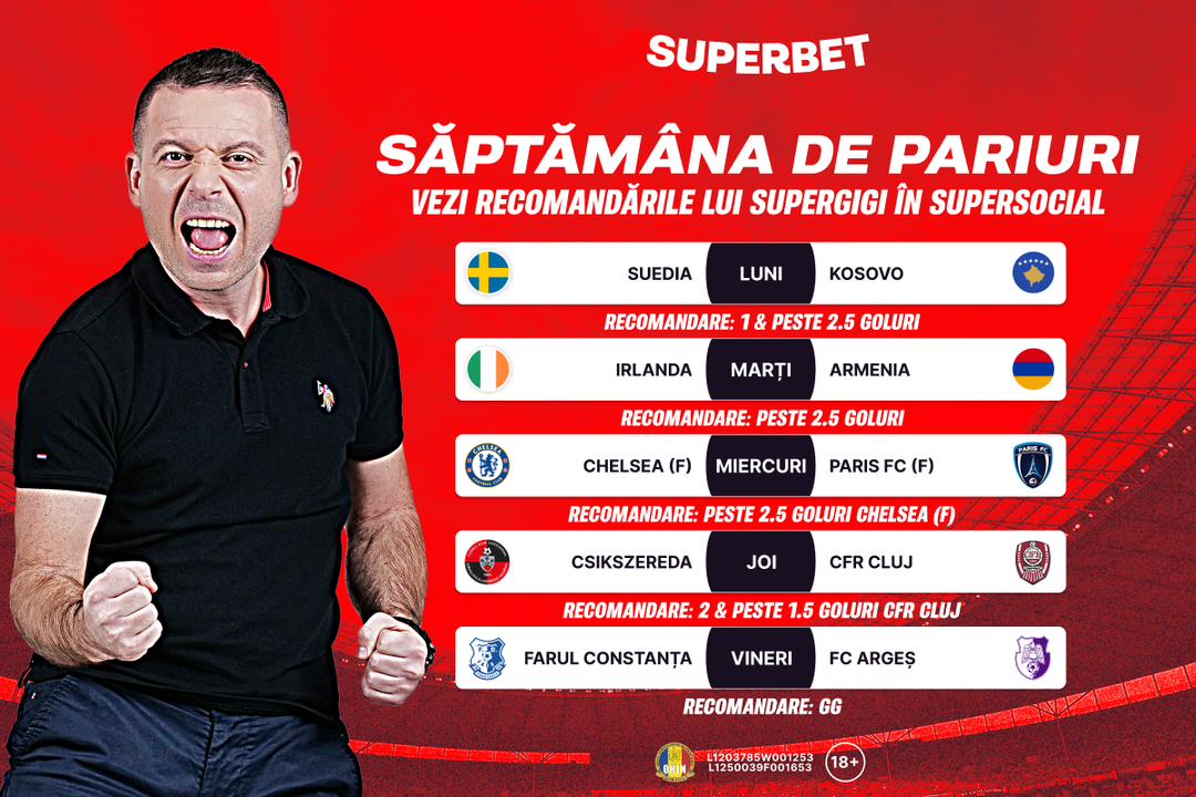 Joi, în Csikszereda – CFR Cluj, restanța din etapa a cincea a Superligii, SuperGigi este încrezător în forma clujenilor. Va fi meci de 2 & Peste 1.5 goluri pentru CFR, iată recomandarea din SuperSocial.