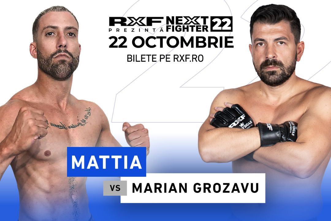 Gala RXF Next Fighter din 22 Octombrie se anunță una explozivă, cu meciuri spectaculoase și rivalități personale care se rezolvă în cușcă. Marian Grozavu și Mattia promit un duel total, în care mândria, forța și determinarea vor vorbi mai tare decât cuvintele. Nu uita să-ți achiziționezi biletul sau fă-ți cont pe RXF.ro ca să vizionezi gratuit evenimentul.