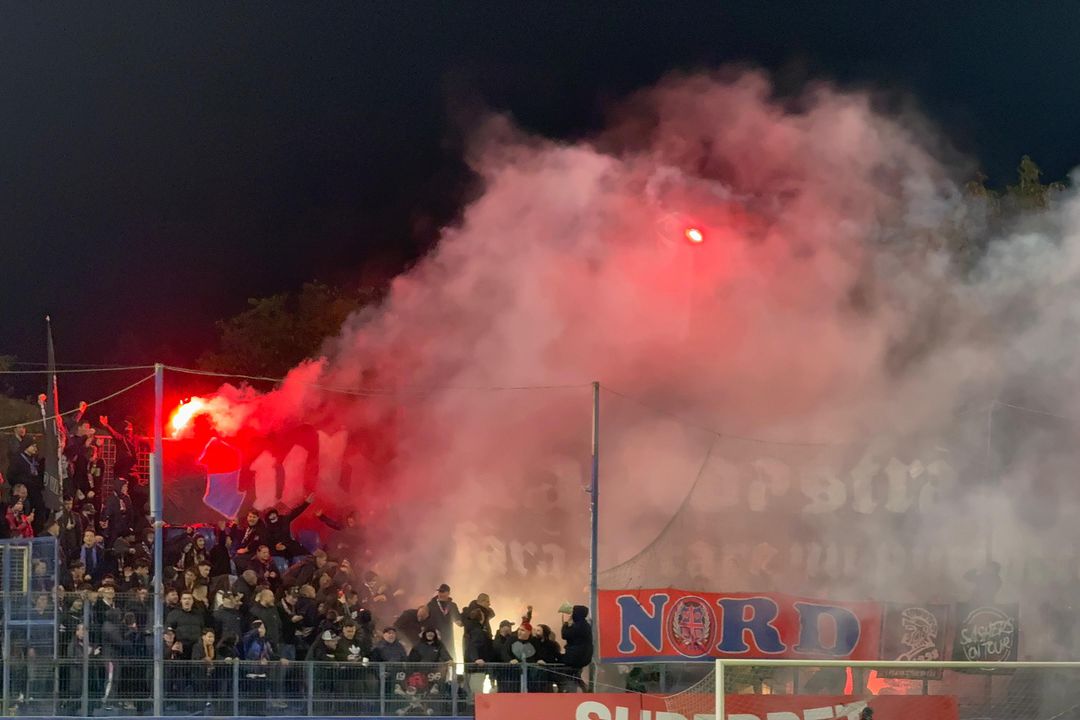 Suporterii roș-albaștrilor, în jur de 600 în sectorul destinat oaspeților, au făcut atmosferă în debutul partidei de la Clinceni.