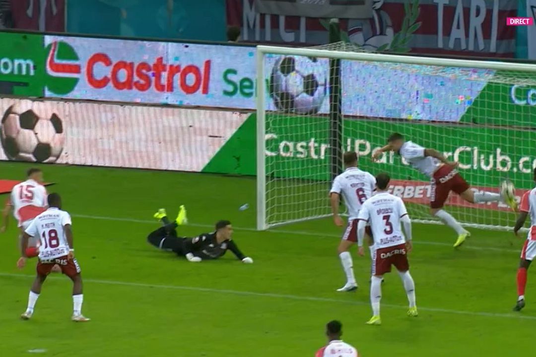 De acolo, Stoinov a venit lansat și a trimis spre poartă. Atacantul Elvir Koljic, și el în apărare la acea fază fixă, s-a retras spre linia porții și a respins balonul cu un procedeu acrobatic, cu călcâiul drept, un gest-reflex cum rar se vede și la cei mai experimentați fundași.