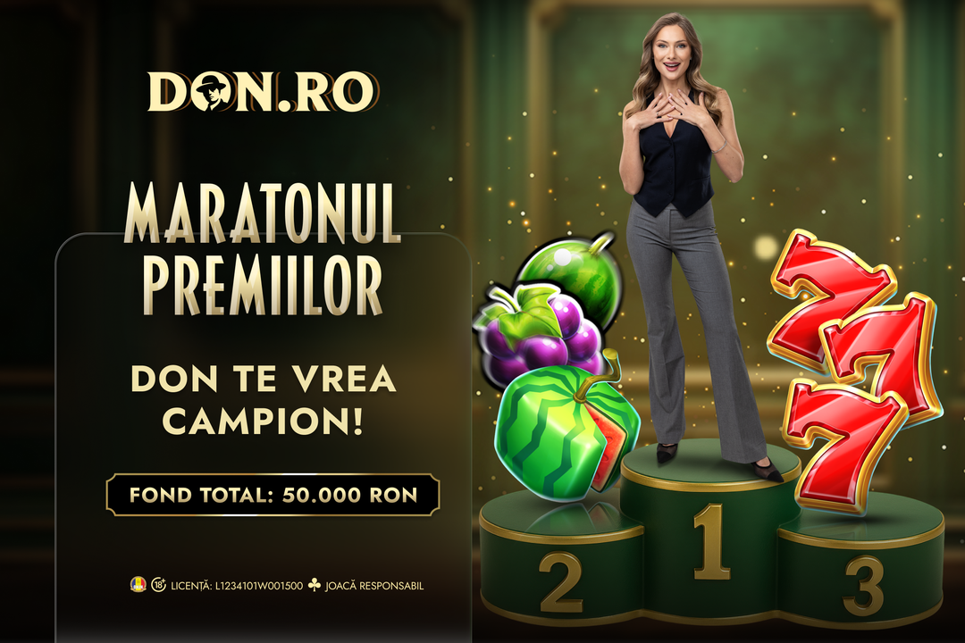 Maratonul Premiilor transformă fiecare rotire într-un pas spre recompensele de Halloween. Intră în cursă în perioada 20-26 octombrie și joacă în stil Don pentru o parte din cei 50.000 RON. Maratonul a început. Misterul bonusurilor zilnice continuă.