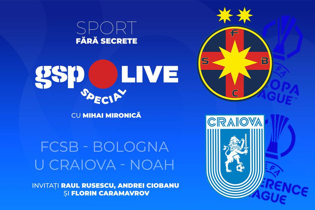 Ediția specială GSP Live revine joi, 23 octombrie, ora 19:15, cu prilejul meciurilor pe care FCSB și Universitatea Craiova le dispută în această seară în cupele europene.