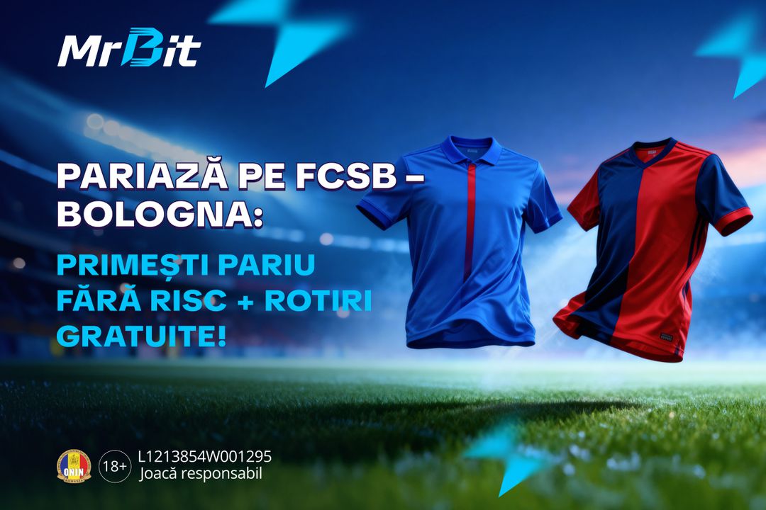 Pariază cel puțin 50 RON pe meciul FCSB – Bologna (pre-meci, cotă minimă 1,50), iar Mr Bit îți oferă surprize indiferent de rezultat.