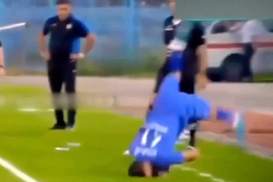 Fotbalistul a încercat o aruncare acrobatică de la margine. Încercând să trimită mingea în teren printr-o tumbă, a alunecat și a căzut în cap. Momentul i-a îngrozit pe jucători și spectatorii de pe teren.