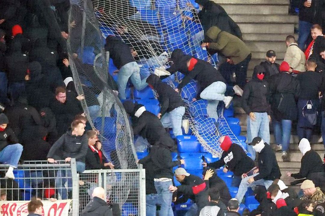 Atunci, mai mulți ultrași din nucleu dur al galeriei „RotBlau” au rupt cordoanele de securitate de pe „St. Jakob-Park”, năpustindu-se, chiar prin zona de stadion destinată familiilor cu copii, spre sectorul oaspeților, pentru a-și regla conturile cu omologii din Germania.