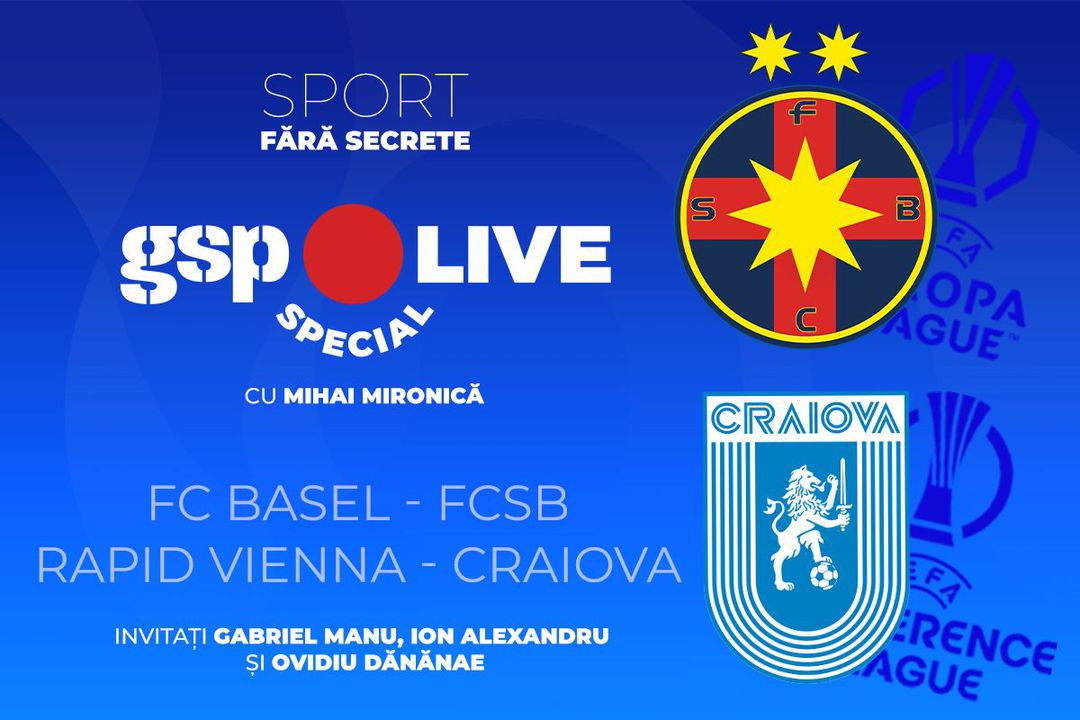 Aceștia vor prefața meciul dintre FC Basel și FCSB și vor primi în timp real informații de la reporterii GSP.ro aflați în Elveția. Pe parcurs, li se va alătura și Ovidiu Dănănae, pentru a analiza partida dintre Rapid Viena și Universitatea Craiova, din cadrul rundei a treia a grupei Conference League.