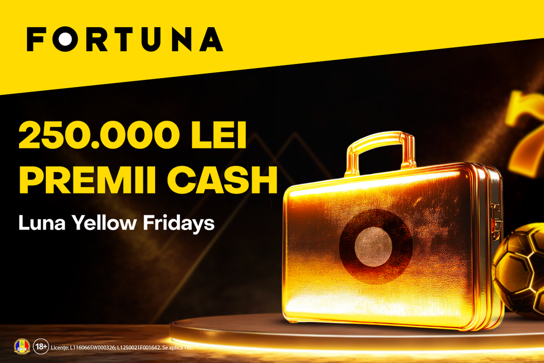 După cum vezi, la Fortuna, Black Friday are altă culoare și vine cu altă energie. Nu e negru, e galben. Nu ține doar o singură zi, ține o lună întreagă. Nu e cu oferte, e cu premii cash. Așa că uită de coșurile pline de produse și de „reducerile” care dispar într-o oră.
