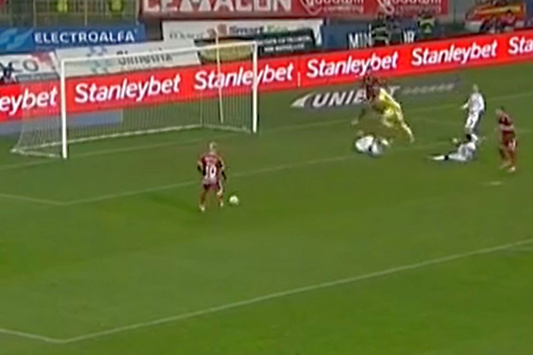 Mingea a ajuns la Petrila, care a avut toată poarta goală în față. Jucătorul Rapidului a oferit apoi un moment care va face înconjurul lumii. A trimis pe lângă poartă, la colțul scurt, nereușind să plaseze balonul în cei 7 metri dintre cele două bare.