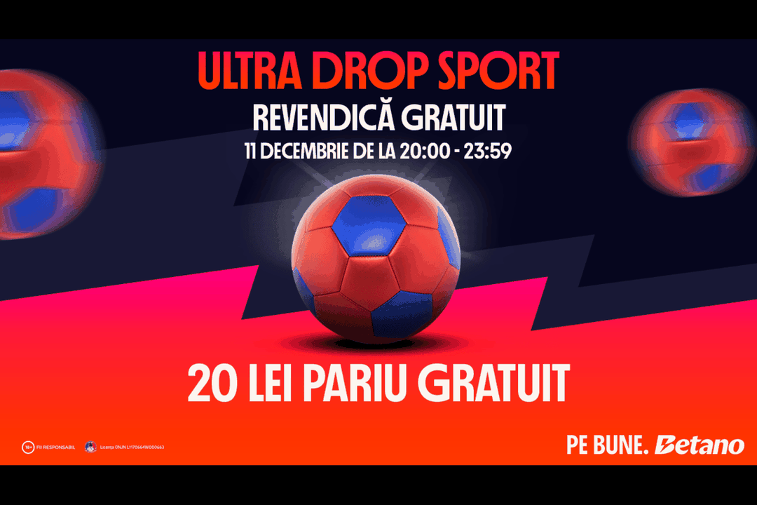 Pe 11 decembrie, între 20:00 și 23:59, fiecare utilizator activ Betano primește un Pariu Gratuit de 20 de Lei, perfect pentru a trăi la maximum emoțiile fotbalului din Europa.